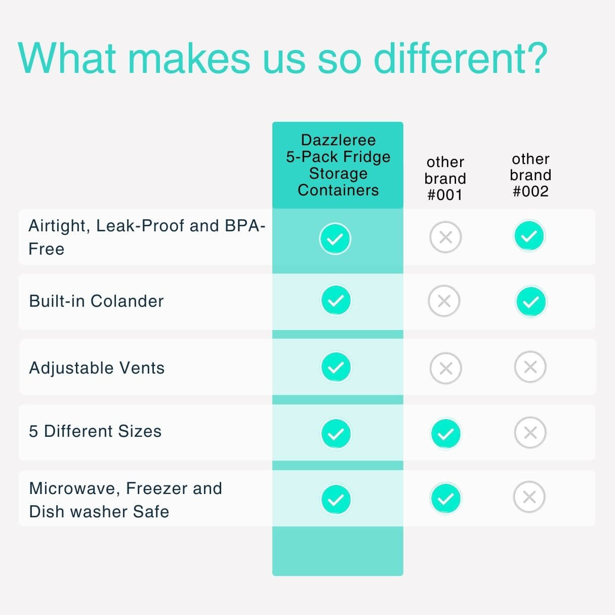 Dazzleree 5-Pack Fridge Storage Containers | No More Slimy Greens or Wasted Groceries β€” Keep Every Bite Fresher, Longer