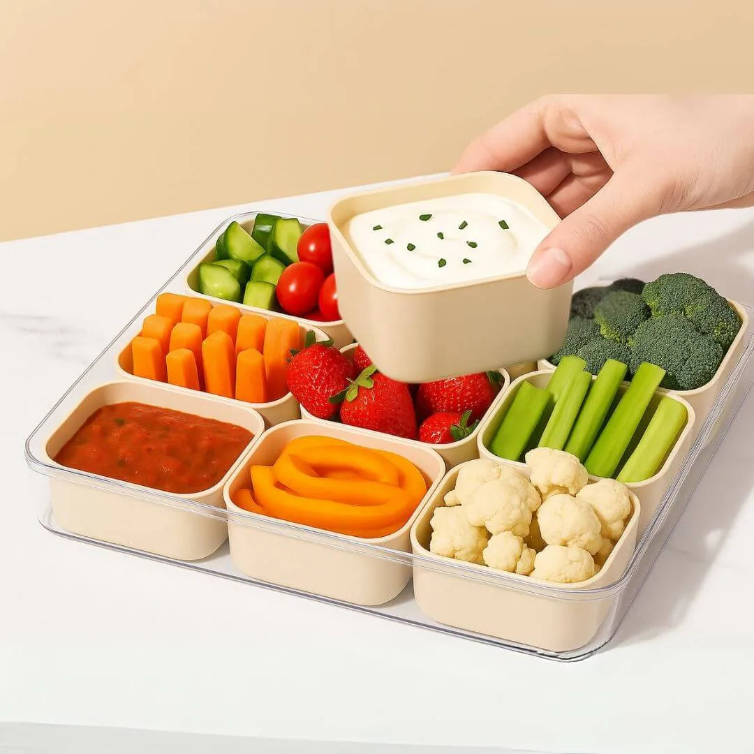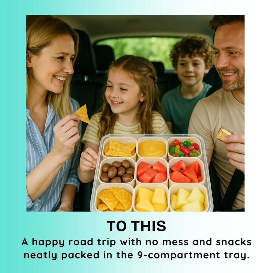 You’re not alone. Upgrade to a 9-compartment tray that keeps every snack organized, fresh, and easy to share.